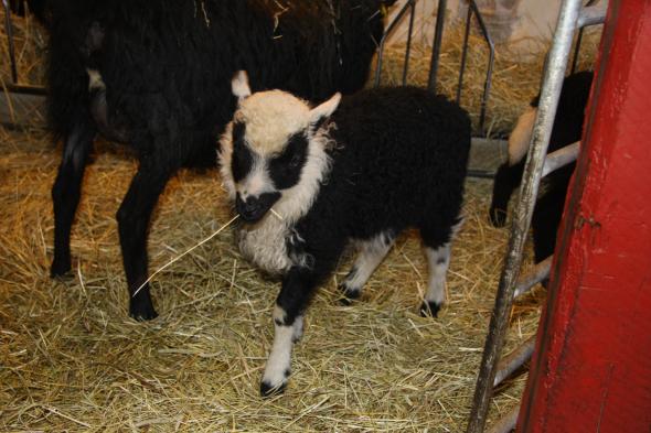 Färgerna är vit, svart, svart med vita tecken och svart-vit skäck. Fadern var en svart-vit skäck. Titta på bilderna och välkommen med din bokning. De är födda i mars månad, så nu är de betydligt större än på bilderna, men färgerna är så klart desamma! Läs mer om våra roslagsfår här.