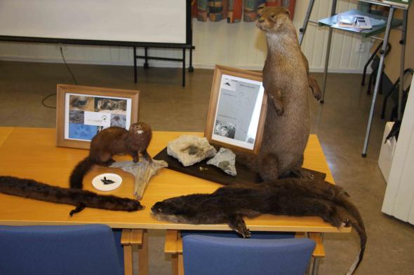 Utterföredrag och exkursion på barmark, Laxön, Älvkarleby, för Naturskyddsföreningen i Älvkarleby. Efter ett längre föredrag med senaste nytt om uttern i Sverige, begav vi oss ut längs Dalälvens steniga fall vid Älvkarleby för att kalibrera synen för hur man hittar spårtecken efter uttern i en sådan miljö.