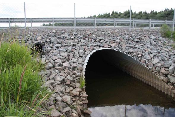 • översvämmad vägtrumma/bro,